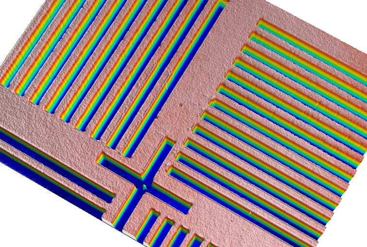 測(cè)量宏觀和微觀透鏡的臺(tái)階高度、曲率半徑和3D地形。測(cè)量波導(dǎo)和密集波分復(fù)用(DWDM)結(jié)構(gòu)的深度和表面粗糙度。