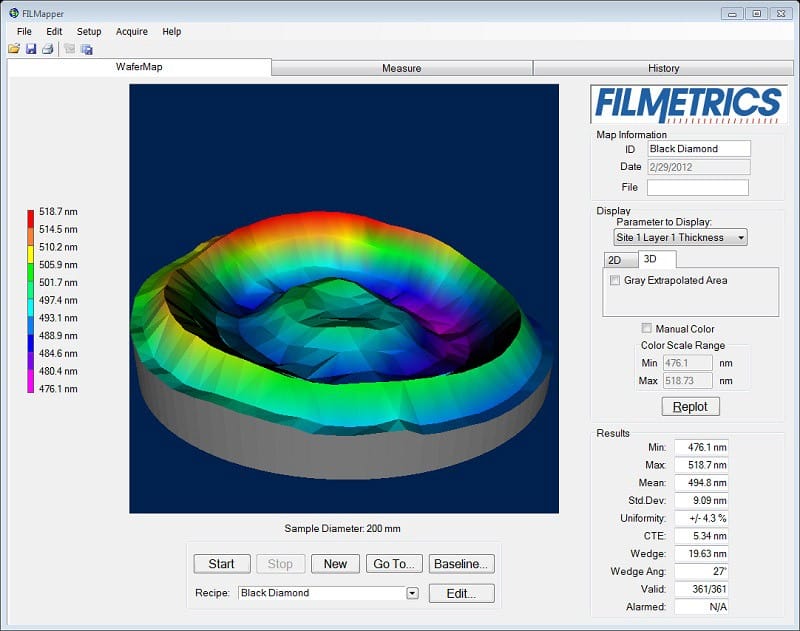 Filmetrics F50 自動(dòng)Mapping膜厚測量儀測量圖: